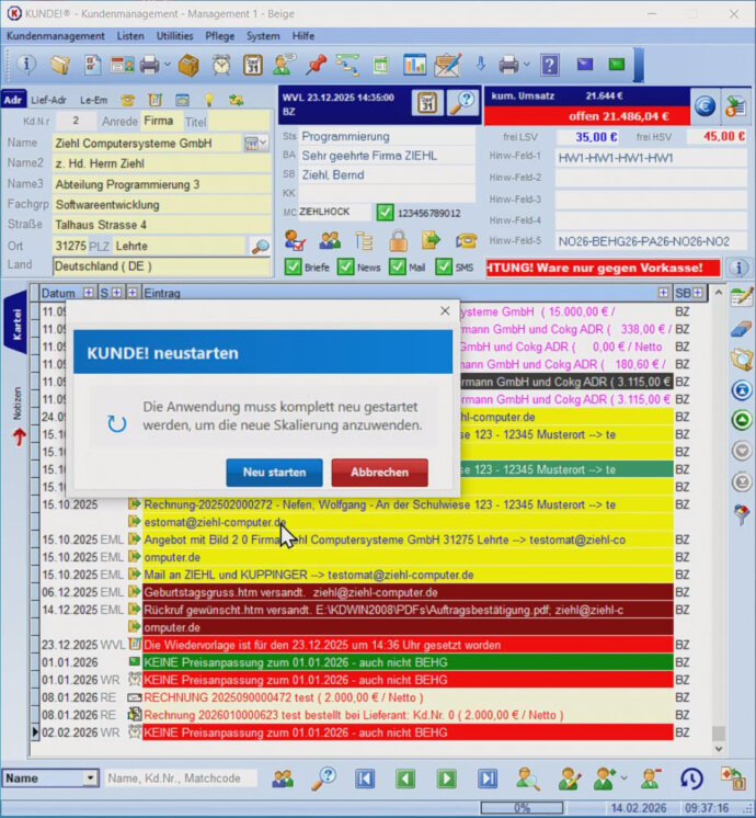 Nach der Auswahl muss KUNDE! neu gestartet werden!