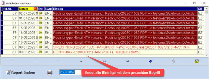 Hier können Sie mit einem Mausklick die Kundenmailadresse mit Ihrer Eigenen tauschen. Senden Sie die Mail dann an sich selbst. Ist alles fehlerfrei, klicken Sie erneut auf den Wechsel Button und die Emailadresse des Kunden wird zurück geladen.