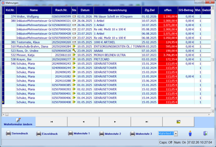 - Die Status Symbole lassen schnell erkennen ob die Rechnung per Brief oder Mail gesendet wurde.