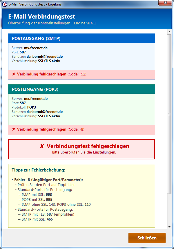 Das Email - Protokoll zum Springen der Fehlerhaften Adressen