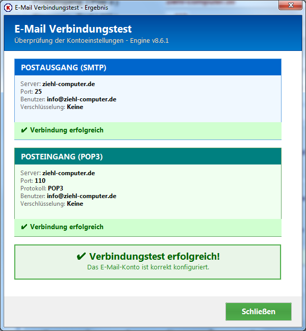 Die neue Überprüfung für die Email Kontoeinstellungen